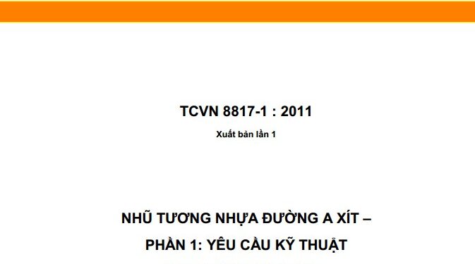 TCVN 8817-1:2011, Nhũ tương nhựa đường a xít – Phần 1: Yêu cầu kỹ thuật