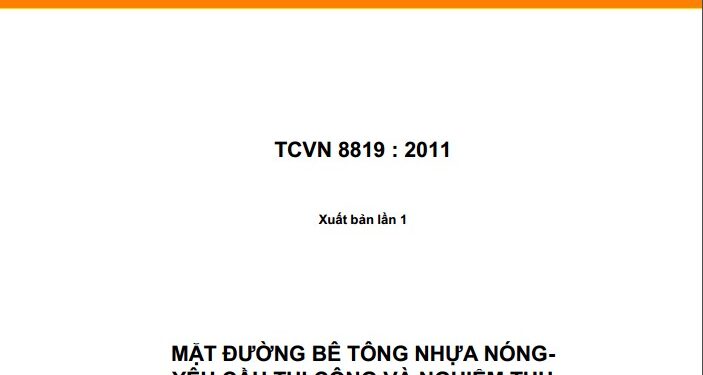 TCVN 8819 : 2011 do Viện Khoa học và Công nghệ Giao thông Vận tải biên soạn, Bộ Giao thông Vận tải đề nghị, Tổng cục Tiêu chuẩn đo lường chất lượng thẩm định, Bộ Khoa học và Công nghệ Công bố.